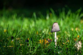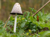 młody grzyb coprinus comatus rosnący wśród roślinności