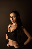 Zdjęcie "Piękna sportowa kobieta w rękawiczkach sportowych i odzieży sportowej odizolowana na czarno" może być wykorzystywane do celów osobistych i komercyjnych zgodnie z warunkami zakupionej licencji Royalty-free. Obraz jest dostępny do pobrania w jakości wysokiej rozdzielczości do 5760x3840.