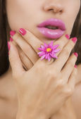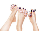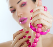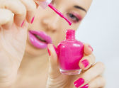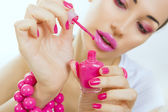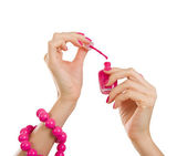 manicure proces - piękna dziewczyna sprawia, że różowy manicure