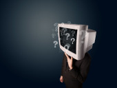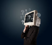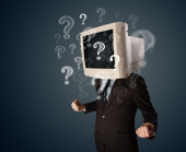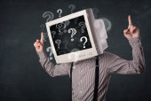 Zdjęcie "Biznesmen z głowicą monitora i znakami zapytania" może być wykorzystywane do celów osobistych i komercyjnych zgodnie z warunkami zakupionej licencji Royalty-free. Obraz jest dostępny do pobrania w jakości wysokiej rozdzielczości do 5760x3840.
