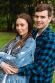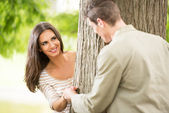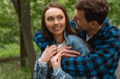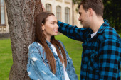 panoramiczna koncepcja przystojnego studenta i atrakcyjnej dziewczyny patrzącej na siebie