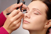 Zdjęcie "stylista jest zastosowanie eyeshadow dla młodej dziewczyny" może być wykorzystywane do celów osobistych i komercyjnych zgodnie z warunkami zakupionej licencji Royalty-free. Obraz jest dostępny do pobrania w jakości wysokiej rozdzielczości do 5760x3840.