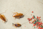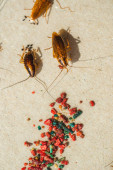 Karaluchy wpadają w pułapkę z przynętą. Karaluchy wpadły w lepką pułapkę..