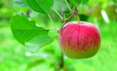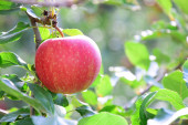 Dojrzałe czerwone pyszne jabłka na jabłoni tuż przed zbiorami jabłek jesienią w Południowym Tyrolu