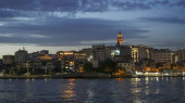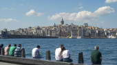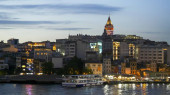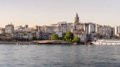 ISTANBUL, TURKEY - MAJ, 23, 2019: wieża galatowa widoczna z promu w Stambule