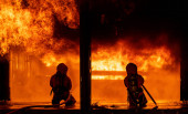 Zdjęcie "Abstrakcyjne zamazane tło strażaków używających gaśnicy na mgłę wodną do walki z płomieniem ognia w dużym budynku. Koncepcja bezpieczeństwa pożarowego i przemysłowego oraz usługi publicznej." może być wykorzystywane do celów osobistych i komercyjnych zgodnie z warunkami zakupionej licencji Royalty-free. Obraz jest dostępny do pobrania w jakości wysokiej rozdzielczości do 5760x3840.