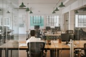 Zdjęcie "Laptop, notebook i okulary siedzące na biurku w dużej otwartej przestrzeni biurowej po godzinach pracy" może być wykorzystywane do celów osobistych i komercyjnych zgodnie z warunkami zakupionej licencji Royalty-free. Obraz jest dostępny do pobrania w jakości wysokiej rozdzielczości do 5760x3840.