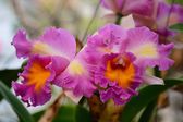 Piękna Orchidea kwiat kwitnący w ogrodzie kwiatowym tle