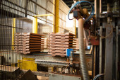 Przemysłowa produkcja elastycznych płytek klinkierowych. Nowoczesne technologie z wykorzystaniem materiałów polimerowych i gliny naturalnej. Płytki ceramiczne elewacyjne do dekoracji wnętrz domów.