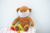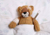 chory Miś z szkody w łóżku
