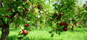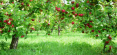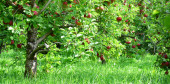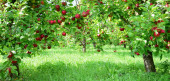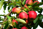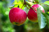 Czerwone dojrzałe jabłka na gałęzi na rozmytym tle