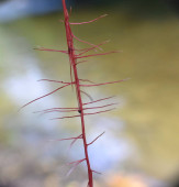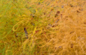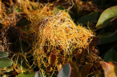 Szczegóły Cuscuta epiphytum stolons w górach, postrzegane od lewej do prawej.