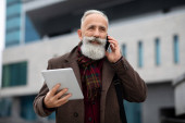 Zdjęcie "Starszy siwowłosy biznesmen korzystający ze smartfona na ulicy" może być wykorzystywane do celów osobistych i komercyjnych zgodnie z warunkami zakupionej licencji Royalty-free. Obraz jest dostępny do pobrania w jakości wysokiej rozdzielczości do 5760x3840.