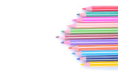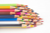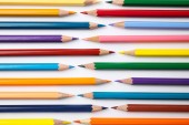 Różne kolorowe kredki ołówkowe drewniane umieszczone w rzędzie