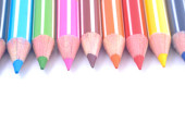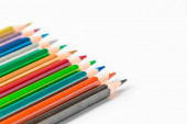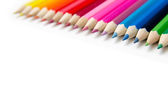 Różne kolorowe kredki ołówkowe drewniane umieszczone w rzędzie