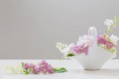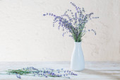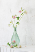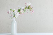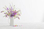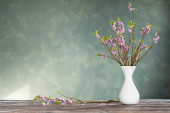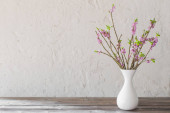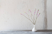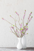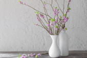 daphne kwiaty w wazonie na starym drewnianym stole na tle biały w