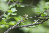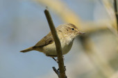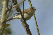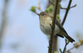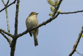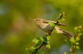 Uroczy Willow Warbler (Phylloscopus trochilus) pisklę, siedzący na otręby. Czeka na rodziców, żeby go nakarmili..