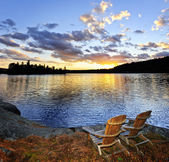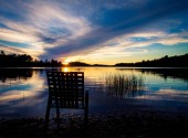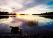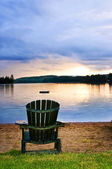 drewniane krzesło na zachód słońca na plaży