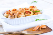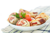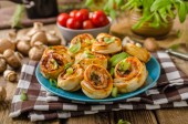 ciasto francuskie Roladki z szynki i chese. upieczone przekąski