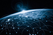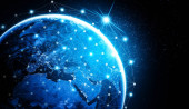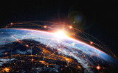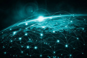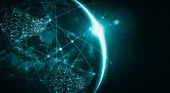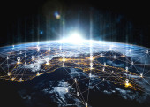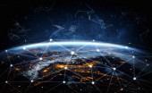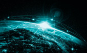 Globalne połączenie sieciowe obejmujące ziemię z liniami innowacyjnego postrzegania