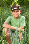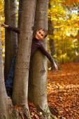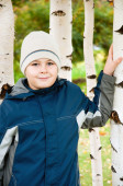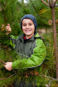 portret dziecka piękny odkryty, wśród sosnowych gałęzi
