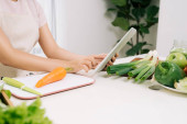 Zdjęcie "trzymając telefon z białym ekranie gotowania świeżej powierzchni do sałatki" może być wykorzystywane do celów osobistych i komercyjnych zgodnie z warunkami zakupionej licencji Royalty-free. Obraz jest dostępny do pobrania w jakości wysokiej rozdzielczości do 5760x3840.