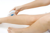ładne zbliżenie słodkie i młoda dziewczyna ubieranie biały ręcznik i golenie jej nogi