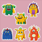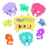 Kolekcja futrzanych komiksowych potworów. Kolorowe Yeti lub Gobliny na Halloween lub Party