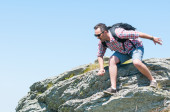 Zdjęcie "Middle aged man with backpack climbing a rock" może być wykorzystywane do celów osobistych i komercyjnych zgodnie z warunkami zakupionej licencji Royalty-free. Obraz jest dostępny do pobrania w jakości wysokiej rozdzielczości do 5760x3840.