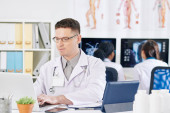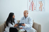 Zdjęcie "Lekarz zalecając butelkę nowych tabletek do kolegi, który robi notatki w dokumencie na schowku" może być wykorzystywane do celów osobistych i komercyjnych zgodnie z warunkami zakupionej licencji Royalty-free. Obraz jest dostępny do pobrania w jakości wysokiej rozdzielczości do 5760x3840.