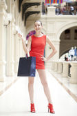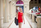 Szczęśliwa młoda kobieta w sklepie