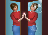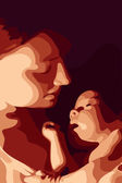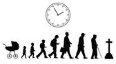 Twarz dziecka jest na szczycie klepsydry, a poniżej jest stary człowiek, który z czasem staje się na tej ilustracji o starzeniu..