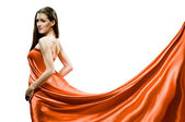 piękna młoda kobieta w ciąży w kolorze czerwonym na białym tle
