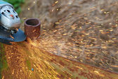 Zdjęcie "Cięcie metalu i iskry z maszyna do cięcia" może być wykorzystywane do celów osobistych i komercyjnych zgodnie z warunkami zakupionej licencji Royalty-free. Obraz jest dostępny do pobrania w jakości wysokiej rozdzielczości do 5760x3840.