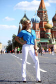młoda kobieta w różowej sukience spaceru w sklepie