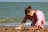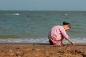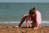 ładne dziecko zabawy nad morzem
