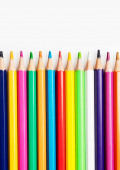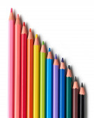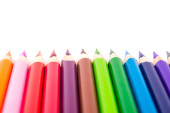 kolorowe drewniane ołówki zbliżenie na białym tle, widok z góry