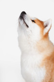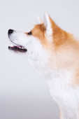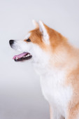 zabawy shiba inu pies machanie łapami izolowane na jasnoszare