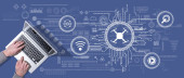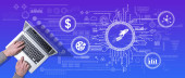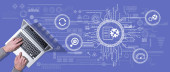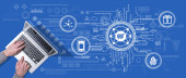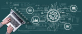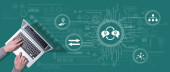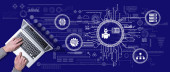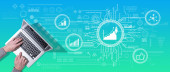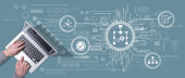 Zdjęcie "Góra widok rąk za pomocą laptopa z symbolem koncepcji kształcenia ustawicznego" może być wykorzystywane do celów osobistych i komercyjnych zgodnie z warunkami zakupionej licencji Royalty-free. Obraz jest dostępny do pobrania w jakości wysokiej rozdzielczości do 5760x3840.