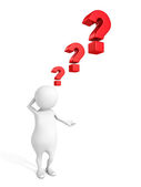 Biały człowiek 3d z wielkim czerwonym znakiem zapytania