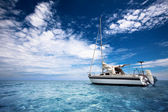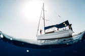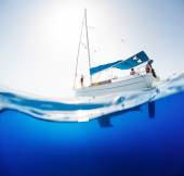 Niesamowite seaview światło słoneczne na żaglówkę w tropikalne morze z głęboko niebieski pod spodem podzielone przez wodnej