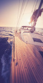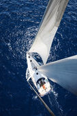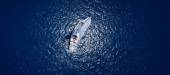 niesamowity widok do żeglowania jachtem w otwartym morzu w wietrzny dzień. Drone widok - oko ptaków