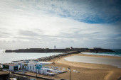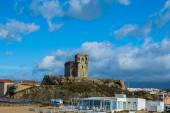 Tarifa widziana z Isla de Las Palomas. Najbardziej południowy punkt Europy, Costa de la Luz, Andaluzja, Hiszpania.