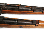 Vintage 30-30 dźwigni działania karabin izolowany na białym tle po obu stronach