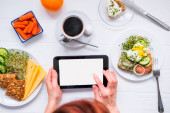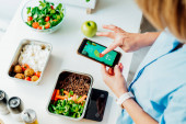 Zdjęcie "Zdrowy plan odchudzania, codzienne menu gotowego posiłku. Kobieta korzystająca z aplikacji śledzącej posiłki na telefon podczas ważenia pudełka na lunch gotowane z góry w skali kuchennej. Zbalansowana porcja z daniem. Gotowanie wstępne" może być wykorzystywane do celów osobistych i komercyjnych zgodnie z warunkami zakupionej licencji Royalty-free. Obraz jest dostępny do pobrania w jakości wysokiej rozdzielczości do 5760x3840.