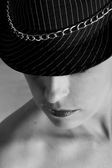 Portret wysokiej kluczowych sztuki kobieta usta i podbródek na jasny whi