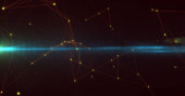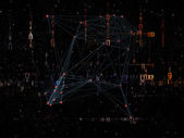 Obraz zegara i sieci połączeń na ciemnym tle. Globalne połączenia i koncepcja przetwarzania danych generowany cyfrowo obraz.