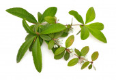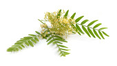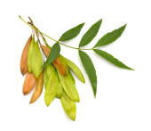 Fraxinus angustifolia, wąskolistny popiół. Odizolowane na biało.