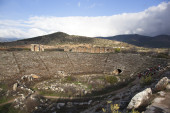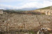 Widok Phaselis starożytnego greckiego miasta amfiteatr z góry Tahtali w tle (Turcja).