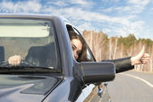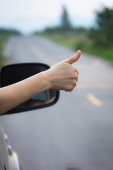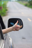 młody ręką gest ok z okna samochodu. Symbol, że wszystko jest dobrze